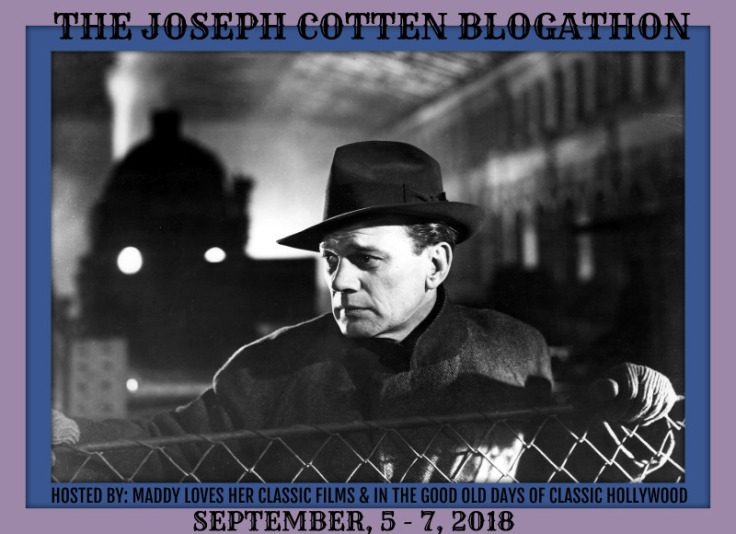 This post is part of the Joseph Cotten Blogathon hosted by Crystal of In the Good Old Days of Classic Hollywood and Maddy of Maddy Loves Her Classic Films.