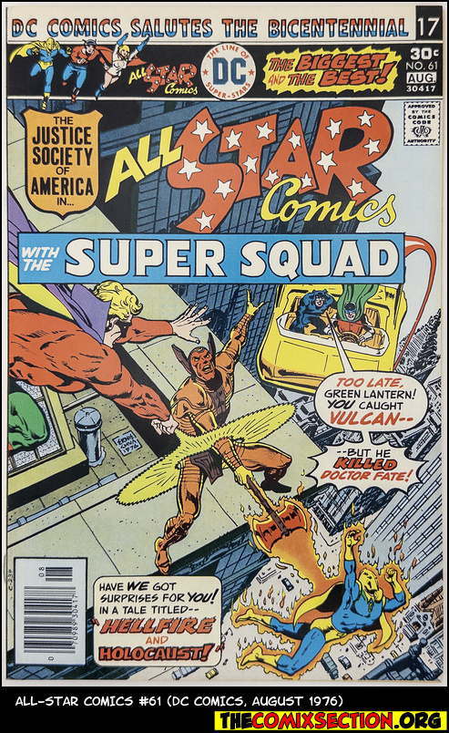 The majority of the issue involves the JSA trying to take down Vulcan, having discovered he’s the rogue astronaut gone mad with power. Or maybe he went mad first; doesn’t end up mattering. Conway must’ve decided even though the All-Star heroes are a bit squarer than their Earth-One counterparts, the comic’s going to get unexpectedly and unnecessarily dark from time to time.