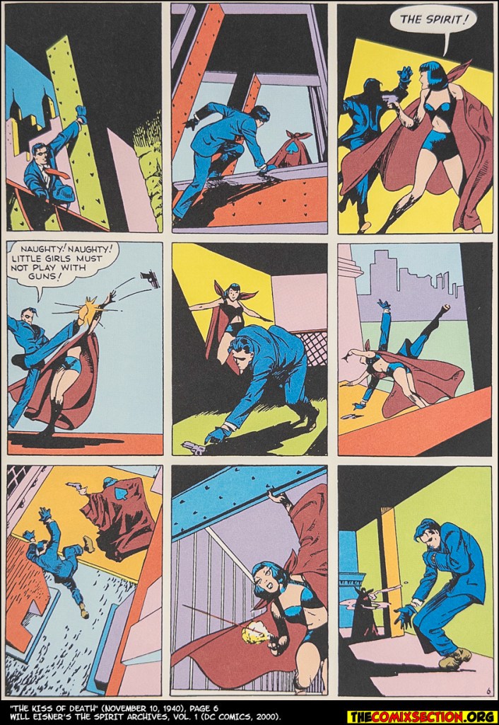 One of Dolan’s cops is convinced—always—the Spirit has done it. So every once in a while, someone will have to remind him, but no, it’s obviously not the Spirit. But the recurring humor gag works, especially once it’s clear they’re not giving it up just because Spirit didn’t do it.